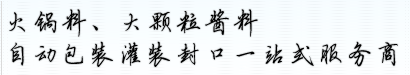 可按要求定做各類火鍋底料包裝機、火鍋底料灌裝生產(chǎn)線、辣椒醬、果醬、火鍋料包裝機生產(chǎn)線等醬料產(chǎn)品的包裝等,同時可配置理瓶機、貼標機、噴碼機、開箱、裝箱機、收瓶機等。